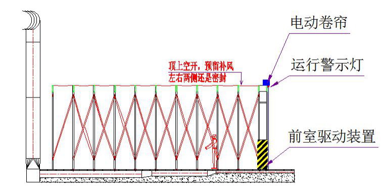該區域一共有1個電動伸縮噴漆房,電動伸縮噴漆房尺寸為13m*3m*2.5m。